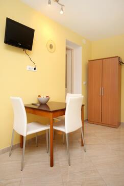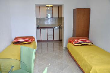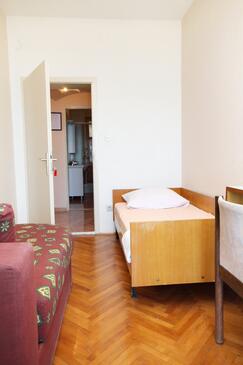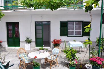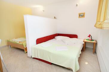 Ferienwohnung bietet Platz für 9 Gäste. Die Betten sind in Schlafzimmern, die es 4 gibt, innerhalb einer Gesamtfläche von 75m2, angeordnet. Die Gäste haben einen eigenen Balkon zur Verfügung, auf der sie in warmen Sommernächten genießen können. Das Apartment bietet Meerblick. Es ist erlaubt, Speisen auf dem Gemeinschafts-Grill vorzubereiten.