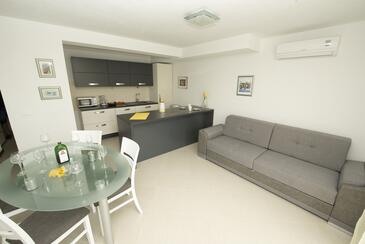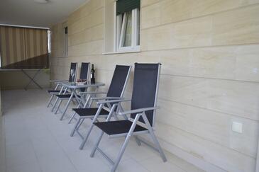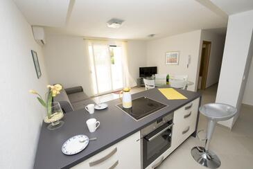 Ferienwohnung bietet Platz für 4 Gäste. Die Betten sind in Schlafzimmern, die es 1 gibt, und in Wohnzimmer, innerhalb einer Gesamtfläche von 41m2, angeordnet. Die Gäste haben eine eigene Terrasse zur Verfügung, auf der sie in warmen Sommernächten genießen können. Es ist erlaubt, Speisen auf dem Gemeinschafts-Grill vorzubereiten.