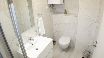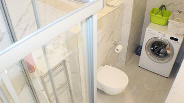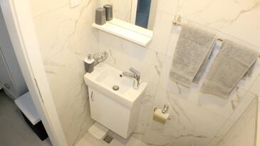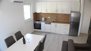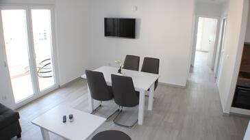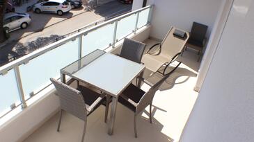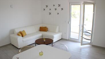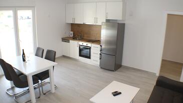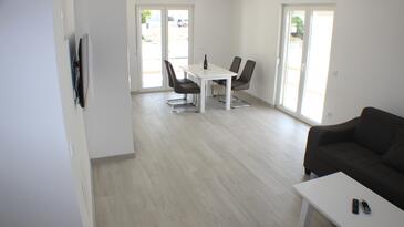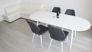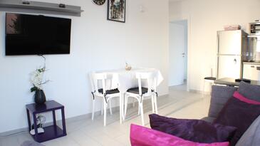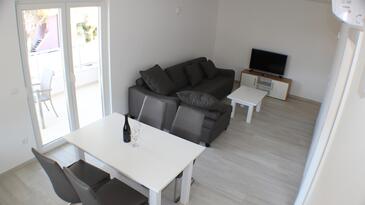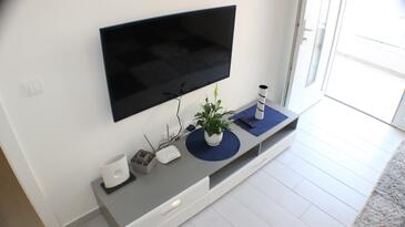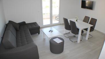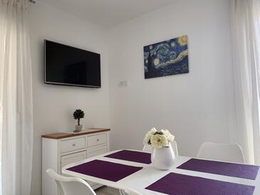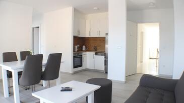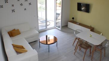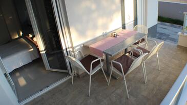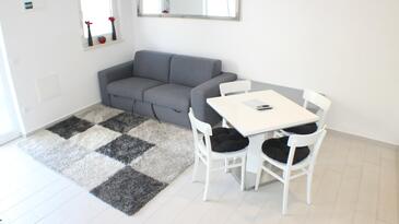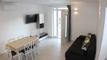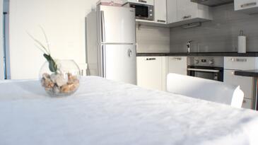 Ferienwohnung bietet Platz für 6 Gäste. Die Betten sind in Schlafzimmern, die es 2 gibt, und in Wohnzimmer, innerhalb einer Gesamtfläche von 55m2, angeordnet. Die Gäste haben eine eigene Terrasse zur Verfügung, auf der sie in warmen Sommernächten genießen können.