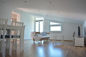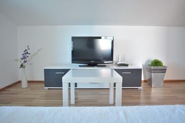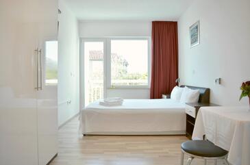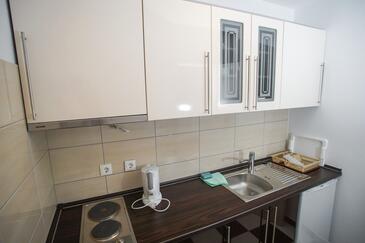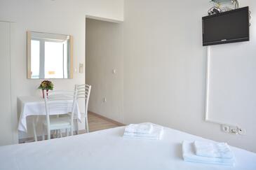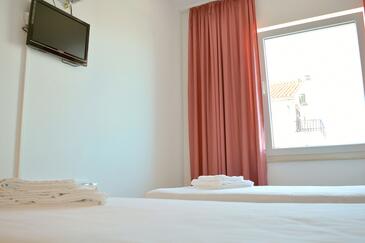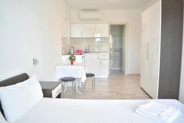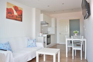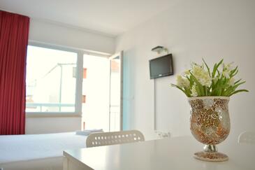 Ferienwohnung bietet Platz für 4 Gäste. Die Betten sind in Schlafzimmern, die es 2 gibt, innerhalb einer Gesamtfläche von 32m2, angeordnet. Die Gäste haben einen eigenen Balkon zur Verfügung, auf der sie in warmen Sommernächten genießen können. Das Apartment bietet Meerblick. Es ist erlaubt, Speisen auf dem Gemeinschafts-Grill vorzubereiten.