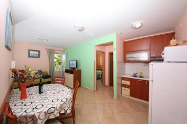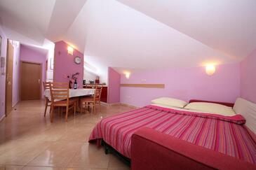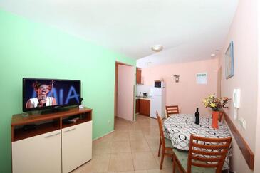 Ferienwohnung bietet Platz für 4 Gäste. Die Betten sind in Schlafzimmern, die es 1 gibt, und in Wohnzimmer, innerhalb einer Gesamtfläche von 33m2, angeordnet. Die Gäste haben einen eigenen Balkon zur Verfügung, auf der sie in warmen Sommernächten genießen können. Das Apartment bietet Meerblick. Es ist erlaubt, Speisen auf dem Gemeinschafts-Grill vorzubereiten.