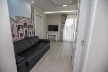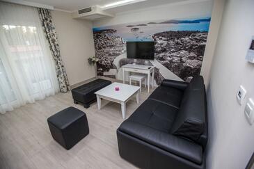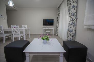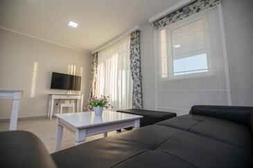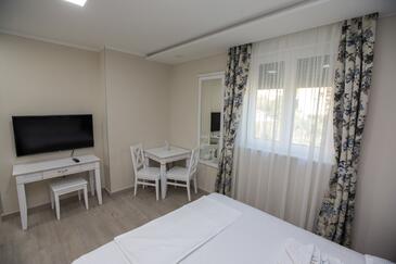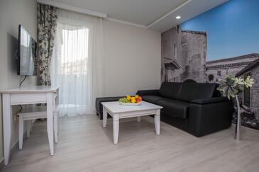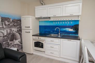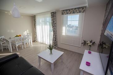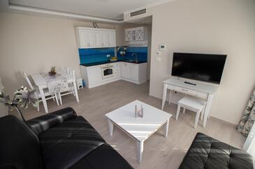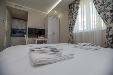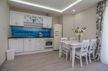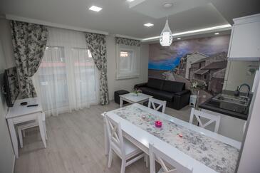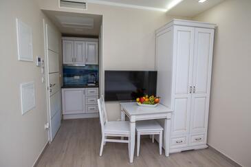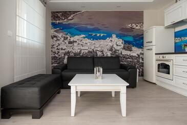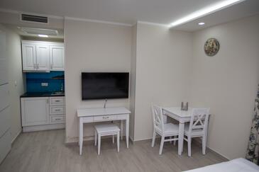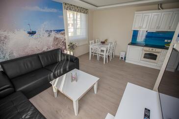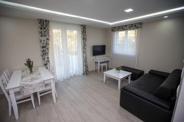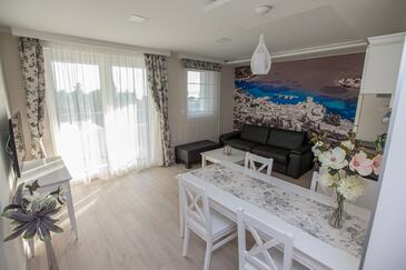 Ferienwohnung bietet Platz für 4 Gäste. Die Betten sind in Schlafzimmern, die es 1 gibt, und in Esszimmer, innerhalb einer Gesamtfläche von 32m2, angeordnet. Die Gäste haben eine eigene Terrasse zur Verfügung, auf der sie in warmen Sommernächten genießen können.