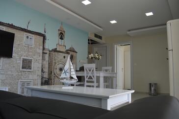 Ferienwohnung bietet Platz für 4 Gäste. Die Betten sind in Schlafzimmern, die es 1 gibt, und in Wohnzimmer, innerhalb einer Gesamtfläche von 27m2, angeordnet. Die Gäste haben eine eigene Terrasse zur Verfügung, auf der sie in warmen Sommernächten genießen können.