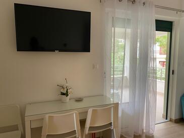 Ferienwohnung bietet Platz für 4 Gäste. Die Betten sind in Schlafzimmern, die es 1 gibt, und in Wohnzimmer, innerhalb einer Gesamtfläche von 30m2, angeordnet. Die Gäste haben eine eigene Terrasse zur Verfügung, auf der sie in warmen Sommernächten genießen können. Das Apartment bietet Meerblick. Es ist erlaubt, Speisen auf dem Gemeinschafts-Grill vorzubereiten.