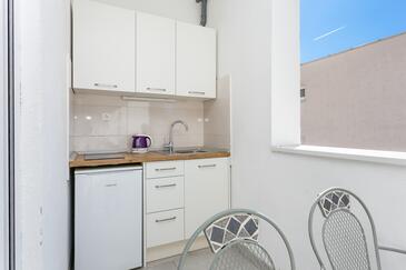 Studio bietet Platz für 4 Gäste. Die Betten sind in Schlafzimmern, die es 1 gibt, innerhalb einer Gesamtfläche von 22m2, angeordnet. Die Gäste haben eine eigene Terrasse zur Verfügung, auf der sie in warmen Sommernächten genießen können. Es ist erlaubt, Speisen auf dem Gemeinschafts-Grill vorzubereiten.