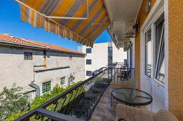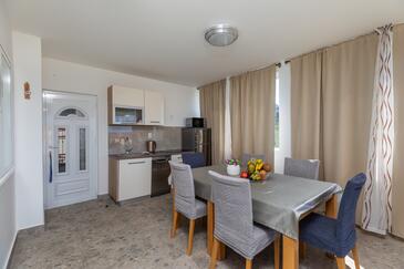 Ferienwohnung bietet Platz für 6 Gäste. Die Betten sind in Schlafzimmern, die es 2 gibt, innerhalb einer Gesamtfläche von 48m2, angeordnet. Die Gäste haben eine eigene Terrasse zur Verfügung, auf der sie in warmen Sommernächten genießen können. Das Apartment bietet Meerblick. Räume der gebuchten Unterkunftseinheit werden nicht in eine Ganze verbunden. Unterkunftseinheit hat Räume, die von dem Rest der Einheit abgetrennt werden.
