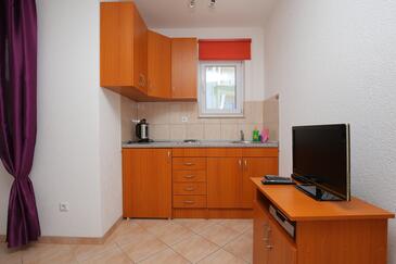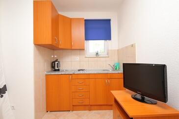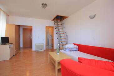 Ferienwohnung bietet Platz für 5 Gäste. Die Betten sind in Schlafzimmern, die es 1 gibt, und in Wohnzimmer, innerhalb einer Gesamtfläche von 35m2, angeordnet. Die Gäste haben einen eigenen Balkon zur Verfügung, auf der sie in warmen Sommernächten genießen können. Es ist erlaubt, Speisen auf dem Gemeinschafts-Grill vorzubereiten. In der Unterkunftseinheit besteht die Möglichkeit des Mitbringens von Haustieren, und die Dienstleistung ist im Preis der Unterkunft enthalten.