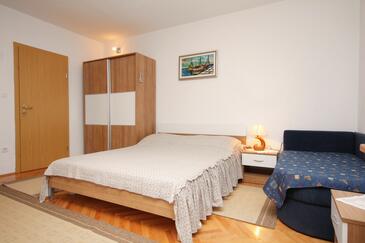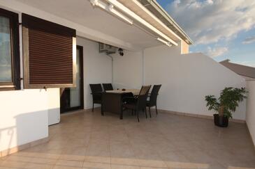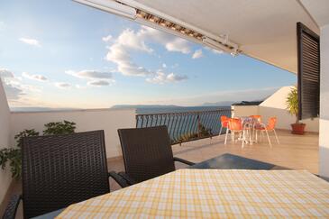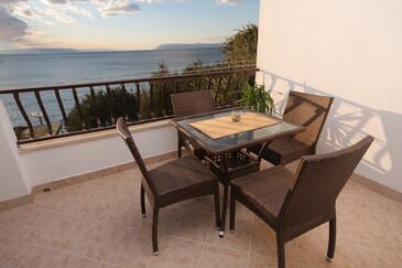 Ferienwohnung bietet Platz für 4 Gäste. Die Betten sind in Schlafzimmern, die es 2 gibt, innerhalb einer Gesamtfläche von 49m2, angeordnet. Die Gäste haben eine eigene Terrasse zur Verfügung, auf der sie in warmen Sommernächten genießen können. Das Apartment bietet Meerblick. Es ist erlaubt, Speisen auf dem Gemeinschafts-Grill vorzubereiten.