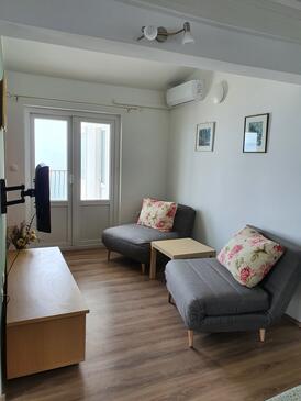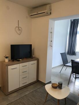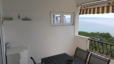 Ferienwohnung bietet Platz für 6 Gäste. Die Betten sind in Schlafzimmern, die es 2 gibt, und in Wohnzimmer, innerhalb einer Gesamtfläche von 52m2, angeordnet. Die Gäste haben eine eigene Terrasse zur Verfügung, auf der sie in warmen Sommernächten genießen können. Das Apartment bietet Meerblick. Es ist erlaubt, Speisen auf dem Gemeinschafts-Grill vorzubereiten.