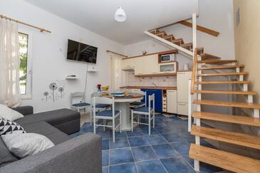 Ferienwohnung bietet Platz für 4 Gäste. Die Betten sind in Schlafzimmern, die es 1 gibt, und in Wohnzimmer, innerhalb einer Gesamtfläche von 46m2, angeordnet. Die Gäste haben einen eigenen Balkon zur Verfügung, auf der sie in warmen Sommernächten genießen können. Das Apartment bietet Meerblick. Es ist erlaubt, Speisen auf dem Gemeinschafts-Grill vorzubereiten.