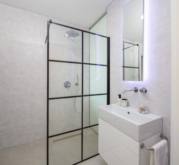 Haus bietet Platz für 8 Gäste. Die Betten sind in Schlafzimmern, die es 3 gibt, und in Wohnzimmer, innerhalb einer Gesamtfläche von 122m2, angeordnet. Die Gäste haben eine eigene Terrasse zur Verfügung, auf der sie in warmen Sommernächten genießen können. Das Haus bietet Meerblick. Für vollen Genuss und Entspannung gibt es einen privaten Grill für Gäste dieser Unterkunft. Während ihres Aufenthalts können sich Gäste im privaten Schwimmbad entspannen. In der Unterkunftseinheit besteht die Möglichkeit des Mitbringens von Haustieren, und die Dienstleistung ist im Preis der Unterkunft enthalten. In der gebuchten Unterkunftseinheit zahlt man am Ort ein Depositum ( der Preis ist an der Internetseite angeführt ).