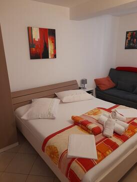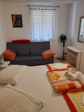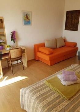 Ferienwohnung bietet Platz für 4 Gäste. Die Betten sind in Schlafzimmern, die es 2 gibt, innerhalb einer Gesamtfläche von 34m2, angeordnet. Die Gäste haben eine eigene Terrasse zur Verfügung, auf der sie in warmen Sommernächten genießen können.