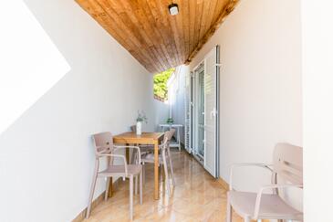 Ferienwohnung bietet Platz für 4 Gäste. Die Betten sind in Schlafzimmern, die es 1 gibt, und in Wohnzimmer, innerhalb einer Gesamtfläche von 31m2, angeordnet. Die Gäste haben einen eigenen Balkon zur Verfügung, auf der sie in warmen Sommernächten genießen können. Das Apartment bietet Meerblick. Es ist erlaubt, Speisen auf dem Gemeinschafts-Grill vorzubereiten. Die reservierte Unterkunftseinheit verfügt über einen gemeinsame Terrasse.