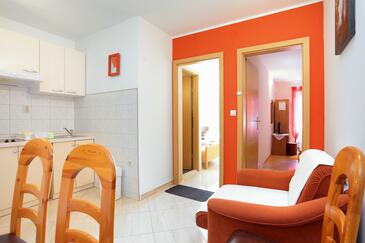 Ferienwohnung bietet Platz für 4 Gäste. Die Betten sind in Schlafzimmern, die es 1 gibt, innerhalb einer Gesamtfläche von 29m2, angeordnet. Die Gäste haben einen eigenen Balkon zur Verfügung, auf der sie in warmen Sommernächten genießen können. Das Apartment bietet Meerblick. Es ist erlaubt, Speisen auf dem Gemeinschafts-Grill vorzubereiten.