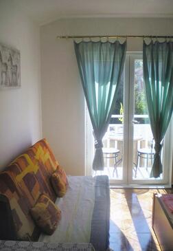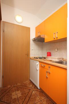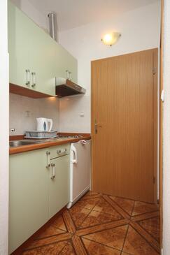Studio bietet Platz für 3 Gäste. Die Betten sind in Schlafzimmern, die es 1 gibt, innerhalb einer Gesamtfläche von 20m2, angeordnet. Die Gäste haben einen eigenen Balkon zur Verfügung, auf der sie in warmen Sommernächten genießen können. Das Studio-Apartment bietet Meerblick. Es ist erlaubt, Speisen auf dem Gemeinschafts-Grill vorzubereiten.