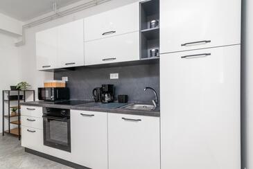 Ferienwohnung bietet Platz für 4 Gäste. Die Betten sind in Schlafzimmern, die es 2 gibt, innerhalb einer Gesamtfläche von 61m2, angeordnet. Die Gäste haben eine eigene Terrasse zur Verfügung, auf der sie in warmen Sommernächten genießen können. Es ist erlaubt, Speisen auf dem Gemeinschafts-Grill vorzubereiten.