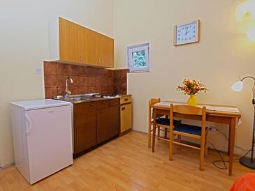 Studio bietet Platz für 2 Gäste. Die Betten sind in Wohnzimmer, innerhalb einer Gesamtfläche von 22m2, angeordnet. Die Gäste haben einen eigenen Balkon zur Verfügung, auf der sie in warmen Sommernächten genießen können. In der gebuchten Unterkunftseinheit zahlt man am Ort ein Depositum ( der Preis ist an der Internetseite angeführt ).