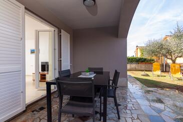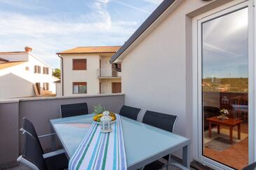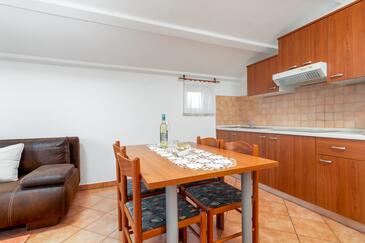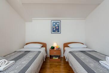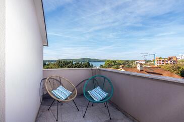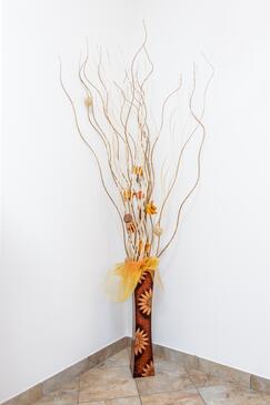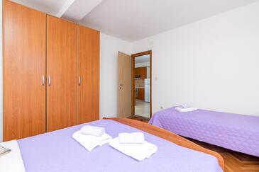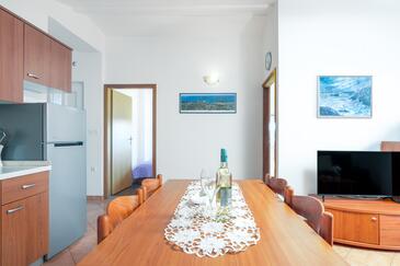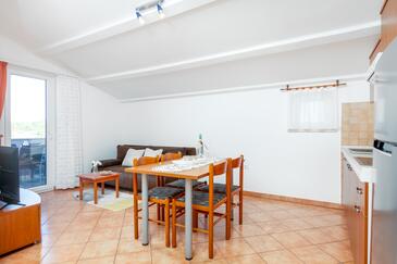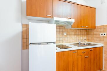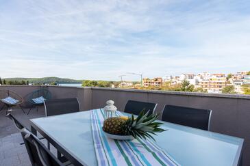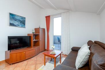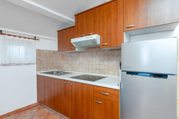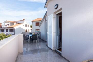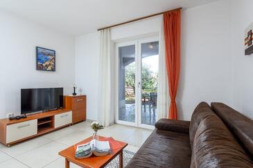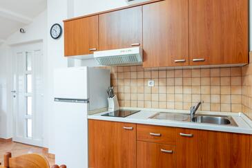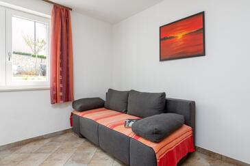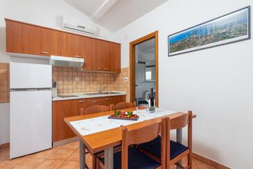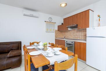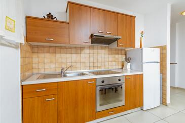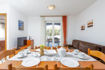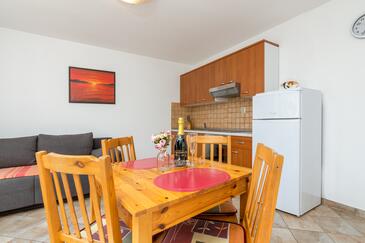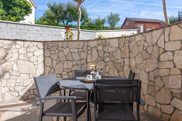 Ferienwohnung bietet Platz für 5 Gäste. Die Betten sind in Schlafzimmern, die es 2 gibt, und in Wohnzimmer, innerhalb einer Gesamtfläche von 45m2, angeordnet. Die Gäste haben eine eigene Terrasse zur Verfügung, auf der sie in warmen Sommernächten genießen können. Das Apartment bietet Meerblick. Es ist erlaubt, Speisen auf dem Gemeinschafts-Grill vorzubereiten.