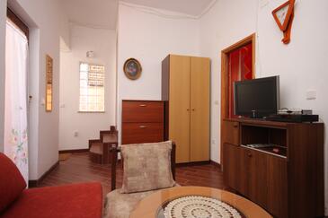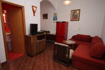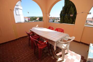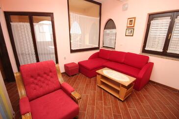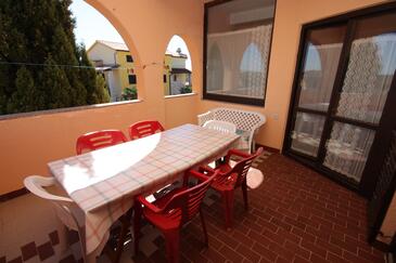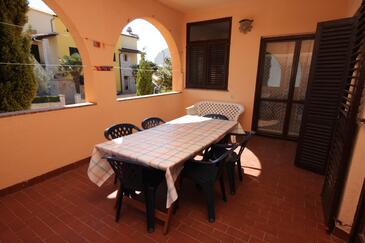 Ferienwohnung bietet Platz für 8 Gäste. Die Betten sind in Schlafzimmern, die es 3 gibt, und in Wohnzimmer, innerhalb einer Gesamtfläche von 77m2, angeordnet. Die Gäste haben eine eigene Terrasse zur Verfügung, auf der sie in warmen Sommernächten genießen können. Es ist erlaubt, Speisen auf dem Gemeinschafts-Grill vorzubereiten.