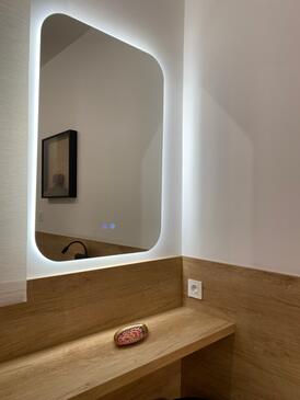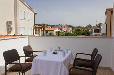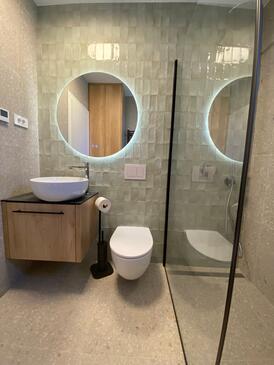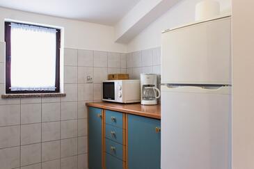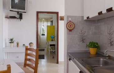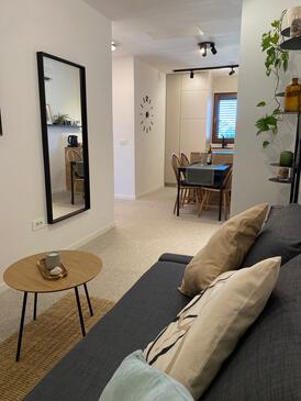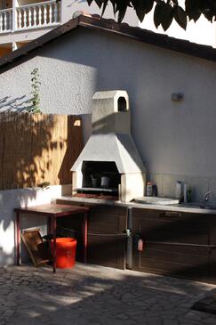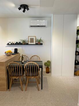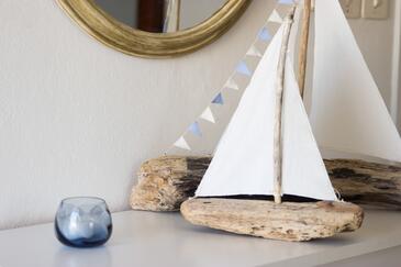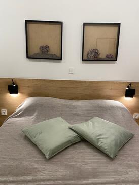 Ferienwohnung bietet Platz für 4 Gäste. Die Betten sind in Schlafzimmern, die es 2 gibt, innerhalb einer Gesamtfläche von 74m2, angeordnet. Die Gäste haben eine eigene Terrasse zur Verfügung, auf der sie in warmen Sommernächten genießen können. Es ist erlaubt, Speisen auf dem Gemeinschafts-Grill vorzubereiten.