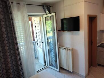 Ferienwohnung bietet Platz für 3 Gäste. Die Betten sind in Schlafzimmern, die es 1 gibt, und in Wohnzimmer, innerhalb einer Gesamtfläche von 34m2, angeordnet. Die Gäste haben eine eigene Terrasse zur Verfügung, auf der sie in warmen Sommernächten genießen können. Es ist erlaubt, Speisen auf dem Gemeinschafts-Grill vorzubereiten.