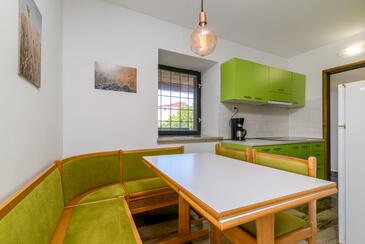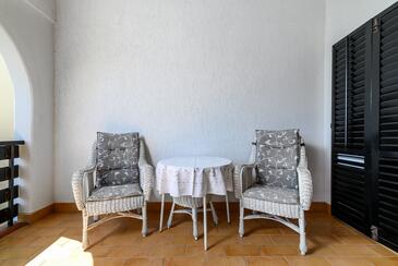 Ferienwohnung bietet Platz für 5 Gäste. Die Betten sind in Schlafzimmern, die es 2 gibt, und in Wohnzimmer, innerhalb einer Gesamtfläche von 47m2, angeordnet. Die Gäste haben eine eigene Terrasse zur Verfügung, auf der sie in warmen Sommernächten genießen können. Es ist erlaubt, Speisen auf dem Gemeinschafts-Grill vorzubereiten. In der Unterkunftseinheit besteht die Möglichkeit des Mitbringens von Haustieren gegen Aufpreis.