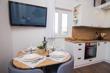 Ferienwohnung bietet Platz für 4 Gäste. Die Betten sind in Schlafzimmern, die es 1 gibt, und in Wohnzimmer, innerhalb einer Gesamtfläche von 43m2, angeordnet. Die Gäste haben eine eigene Terrasse zur Verfügung, auf der sie in warmen Sommernächten genießen können. Es ist erlaubt, Speisen auf dem Gemeinschafts-Grill vorzubereiten.
