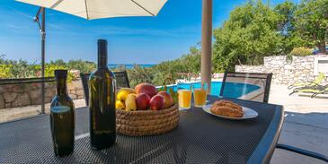 Ferienwohnung bietet Platz für 4 Gäste. Die Betten sind in Schlafzimmern, die es 2 gibt, innerhalb einer Gesamtfläche von 70m2, angeordnet. Die Gäste haben eine eigene Terrasse zur Verfügung, auf der sie in warmen Sommernächten genießen können. Das Apartment bietet Meerblick. Für vollen Genuss und Entspannung gibt es einen privaten Grill für Gäste dieser Unterkunft. Während ihres Aufenthalts können sich Gäste im privaten Schwimmbad entspannen. In der Unterkunftseinheit besteht die Möglichkeit des Mitbringens von Haustieren, und die Dienstleistung ist im Preis der Unterkunft enthalten.