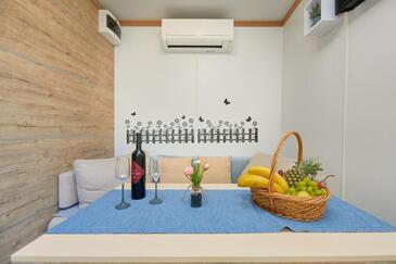 Ferienwohnung bietet Platz für 5 Gäste. Die Betten sind in Schlafzimmern, die es 2 gibt, und in Esszimmer, innerhalb einer Gesamtfläche von 25m2, angeordnet. Die Gäste haben eine eigene Terrasse zur Verfügung, auf der sie in warmen Sommernächten genießen können. Es ist erlaubt, Speisen auf dem Gemeinschafts-Grill vorzubereiten. In der Unterkunftseinheit besteht die Möglichkeit des Mitbringens von Haustieren, und die Dienstleistung ist im Preis der Unterkunft enthalten.