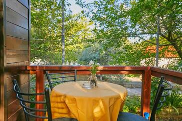 Ferienwohnung bietet Platz für 5 Gäste. Die Betten sind in Schlafzimmern, die es 2 gibt, und in Esszimmer, innerhalb einer Gesamtfläche von 25m2, angeordnet. Die Gäste haben eine eigene Terrasse zur Verfügung, auf der sie in warmen Sommernächten genießen können. Es ist erlaubt, Speisen auf dem Gemeinschafts-Grill vorzubereiten. In der Unterkunftseinheit besteht die Möglichkeit des Mitbringens von Haustieren, und die Dienstleistung ist im Preis der Unterkunft enthalten.