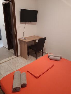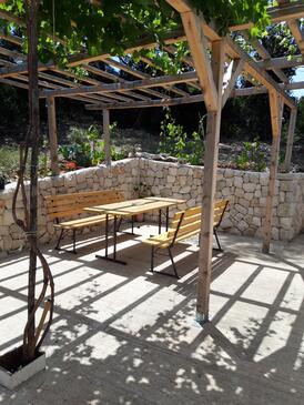 Ferienwohnung bietet Platz für 5 Gäste. Die Betten sind in Schlafzimmern, die es 2 gibt, innerhalb einer Gesamtfläche von 42m2, angeordnet. Die Gäste haben eine eigene Terrasse zur Verfügung, auf der sie in warmen Sommernächten genießen können. Es ist erlaubt, Speisen auf dem Gemeinschafts-Grill vorzubereiten.