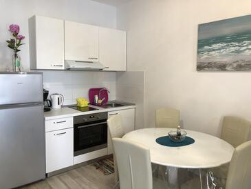Ferienwohnung bietet Platz für 4 Gäste. Die Betten sind in Schlafzimmern, die es 2 gibt, innerhalb einer Gesamtfläche von 41m2, angeordnet. Die Gäste haben eine eigene Terrasse zur Verfügung, auf der sie in warmen Sommernächten genießen können. Das Apartment bietet Meerblick. Es ist erlaubt, Speisen auf dem Gemeinschafts-Grill vorzubereiten.