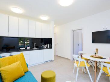 Ferienwohnung bietet Platz für 2 Gäste. Die Betten sind in Schlafzimmern, die es 1 gibt, innerhalb einer Gesamtfläche von 38m2, angeordnet. Die Gäste haben einen eigenen Balkon zur Verfügung, auf der sie in warmen Sommernächten genießen können. Das Apartment bietet Meerblick.
