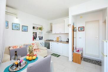 Ferienwohnung bietet Platz für 2 Gäste. Die Betten sind in Schlafzimmern, die es 1 gibt, innerhalb einer Gesamtfläche von 32m2, angeordnet. Die Gäste haben eine eigene Terrasse zur Verfügung, auf der sie in warmen Sommernächten genießen können. Das Apartment bietet Meerblick.
