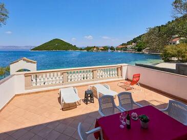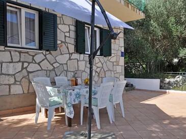 Ferienwohnung bietet Platz für 6 Gäste. Die Betten sind in Schlafzimmern, die es 3 gibt, innerhalb einer Gesamtfläche von 51m2, angeordnet. Die Gäste haben eine eigene Terrasse zur Verfügung, auf der sie in warmen Sommernächten genießen können. Das Apartment bietet Meerblick. Es ist erlaubt, Speisen auf dem Gemeinschafts-Grill vorzubereiten.