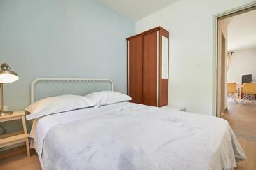 Ferienwohnung bietet Platz für 4 Gäste. Die Betten sind in Schlafzimmern, die es 2 gibt, innerhalb einer Gesamtfläche von 60m2, angeordnet. Die Gäste haben eine eigene Terrasse zur Verfügung, auf der sie in warmen Sommernächten genießen können. Das Apartment bietet Meerblick. Es ist erlaubt, Speisen auf dem Gemeinschafts-Grill vorzubereiten.