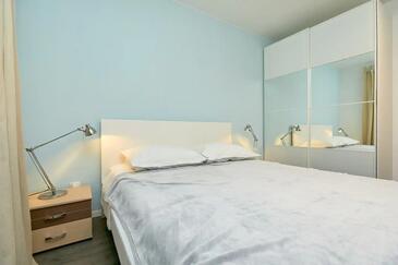 Ferienwohnung bietet Platz für 4 Gäste. Die Betten sind in Schlafzimmern, die es 2 gibt, innerhalb einer Gesamtfläche von 60m2, angeordnet. Die Gäste haben eine eigene Terrasse zur Verfügung, auf der sie in warmen Sommernächten genießen können. Das Apartment bietet Meerblick. Es ist erlaubt, Speisen auf dem Gemeinschafts-Grill vorzubereiten.