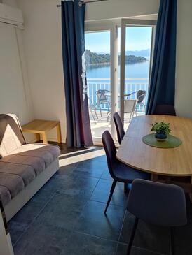 Ferienwohnung bietet Platz für 6 Gäste. Die Betten sind in Schlafzimmern, die es 2 gibt, und in Wohnzimmer, innerhalb einer Gesamtfläche von 45m2, angeordnet. Die Gäste haben eine eigene Terrasse zur Verfügung, auf der sie in warmen Sommernächten genießen können. Das Apartment bietet Meerblick. Für vollen Genuss und Entspannung gibt es einen privaten Grill für Gäste dieser Unterkunft.