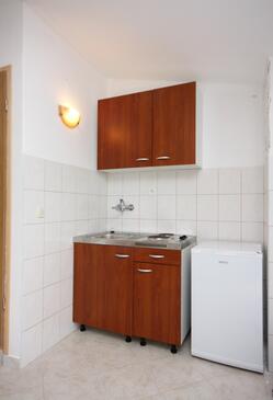 Studio bietet Platz für 3 Gäste. Die Betten sind in Schlafzimmern, die es 1 gibt, innerhalb einer Gesamtfläche von 30m2, angeordnet. Die Gäste haben eine eigene Terrasse zur Verfügung, auf der sie in warmen Sommernächten genießen können. Das Studio-Apartment bietet Meerblick. Es ist erlaubt, Speisen auf dem Gemeinschafts-Grill vorzubereiten.