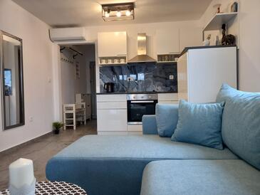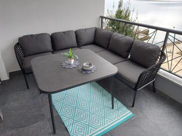Ferienwohnung bietet Platz für 3 Gäste. Die Betten sind in Schlafzimmern, die es 1 gibt, innerhalb einer Gesamtfläche von 70m2, angeordnet. Die Gäste haben einen eigenen Balkon zur Verfügung, auf der sie in warmen Sommernächten genießen können. Das Apartment bietet Meerblick. Es ist erlaubt, Speisen auf dem Gemeinschafts-Grill vorzubereiten.