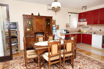 Ferienwohnung bietet Platz für 4 Gäste. Die Betten sind in Schlafzimmern, die es 1 gibt, und in Wohnzimmer, innerhalb einer Gesamtfläche von 58m2, angeordnet. Die Gäste haben eine eigene Terrasse zur Verfügung, auf der sie in warmen Sommernächten genießen können. Das Apartment bietet Meerblick. Es ist erlaubt, Speisen auf dem Gemeinschafts-Grill vorzubereiten.