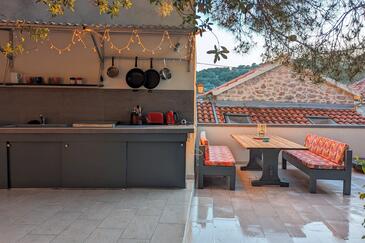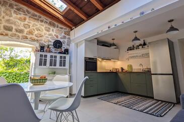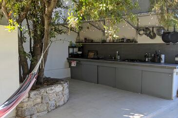 Haus bietet Platz für 4 Gäste. Die Betten sind in Schlafzimmern, die es 2 gibt, innerhalb einer Gesamtfläche von 89m2, angeordnet. Die Gäste haben eine eigene Terrasse zur Verfügung, auf der sie in warmen Sommernächten genießen können. Das Haus bietet Meerblick. Es ist erlaubt, Speisen auf dem Gemeinschafts-Grill vorzubereiten. In der Unterkunftseinheit besteht die Möglichkeit des Mitbringens von Haustieren gegen Aufpreis. Räume der gebuchten Unterkunftseinheit werden nicht in eine Ganze verbunden.