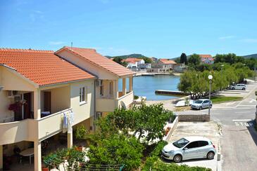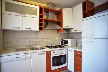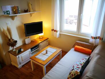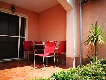 Ferienwohnung bietet Platz für 4 Gäste. Die Betten sind in Schlafzimmern, die es 2 gibt, innerhalb einer Gesamtfläche von 46m2, angeordnet. Die Gäste haben eine eigene Terrasse zur Verfügung, auf der sie in warmen Sommernächten genießen können. Das Apartment bietet Meerblick. Es ist erlaubt, Speisen auf dem Gemeinschafts-Grill vorzubereiten.