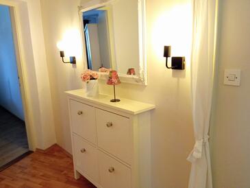 Ferienwohnung bietet Platz für 4 Gäste. Die Betten sind in Schlafzimmern, die es 2 gibt, innerhalb einer Gesamtfläche von 46m2, angeordnet. Die Gäste haben eine eigene Terrasse zur Verfügung, auf der sie in warmen Sommernächten genießen können. Das Apartment bietet Meerblick. Es ist erlaubt, Speisen auf dem Gemeinschafts-Grill vorzubereiten.