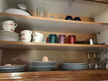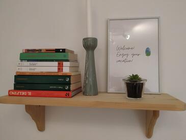 Ferienwohnung bietet Platz für 4 Gäste. Die Betten sind in Schlafzimmern, die es 2 gibt, innerhalb einer Gesamtfläche von 43m2, angeordnet. Die Gäste haben eine eigene Terrasse zur Verfügung, auf der sie in warmen Sommernächten genießen können. Es ist erlaubt, Speisen auf dem Gemeinschafts-Grill vorzubereiten.