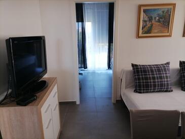 Ferienwohnung bietet Platz für 6 Gäste. Die Betten sind in Schlafzimmern, die es 2 gibt, und in Wohnzimmer, innerhalb einer Gesamtfläche von 60m2, angeordnet. Die Gäste haben eine eigene Terrasse zur Verfügung, auf der sie in warmen Sommernächten genießen können. Es ist erlaubt, Speisen auf dem Gemeinschafts-Grill vorzubereiten.