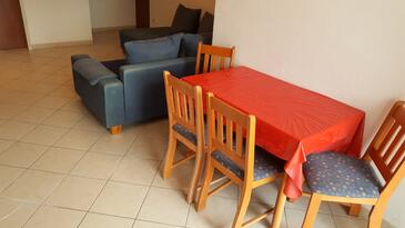 Ferienwohnung bietet Platz für 6 Gäste. Die Betten sind in Schlafzimmern, die es 2 gibt, und in Wohnzimmer, innerhalb einer Gesamtfläche von 57m2, angeordnet. Die Gäste haben eine eigene Terrasse zur Verfügung, auf der sie in warmen Sommernächten genießen können. Das Apartment bietet Meerblick. Es ist erlaubt, Speisen auf dem Gemeinschafts-Grill vorzubereiten.