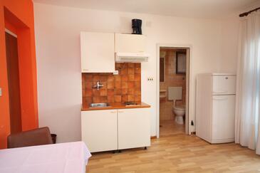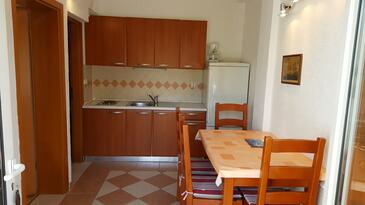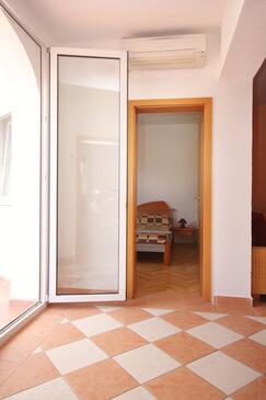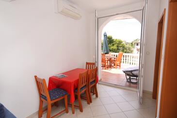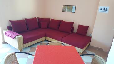 Ferienwohnung bietet Platz für 6 Gäste. Die Betten sind in Schlafzimmern, die es 2 gibt, und in Wohnzimmer, innerhalb einer Gesamtfläche von 57m2, angeordnet. Die Gäste haben eine eigene Terrasse zur Verfügung, auf der sie in warmen Sommernächten genießen können. Das Apartment bietet Meerblick. Es ist erlaubt, Speisen auf dem Gemeinschafts-Grill vorzubereiten.