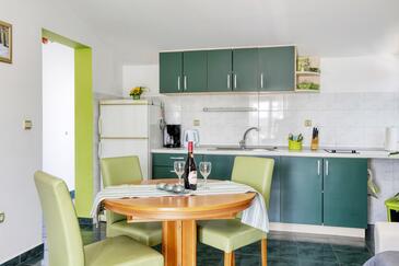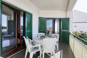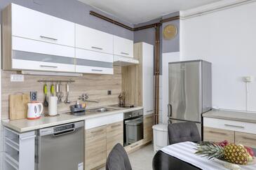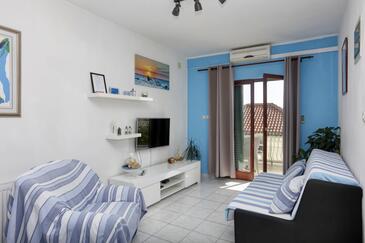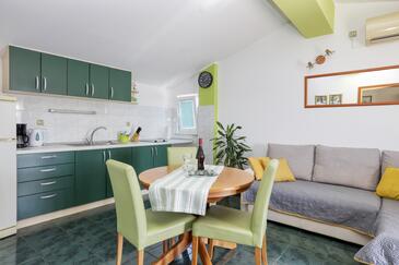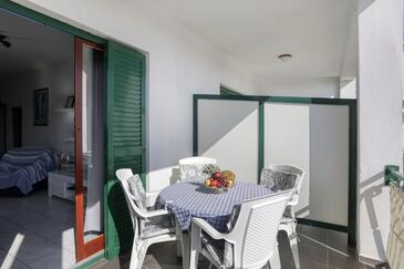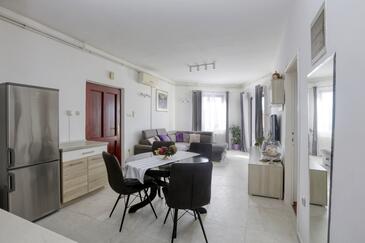 Ferienwohnung bietet Platz für 4 Gäste. Die Betten sind in Schlafzimmern, die es 2 gibt, innerhalb einer Gesamtfläche von 50m2, angeordnet. Die Gäste haben eine eigene Terrasse zur Verfügung, auf der sie in warmen Sommernächten genießen können. Das Apartment bietet Meerblick. Es ist erlaubt, Speisen auf dem Gemeinschafts-Grill vorzubereiten. In der Unterkunftseinheit besteht die Möglichkeit des Mitbringens von Haustieren gegen Aufpreis.