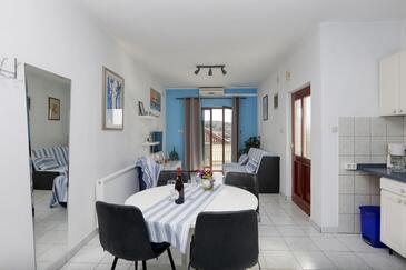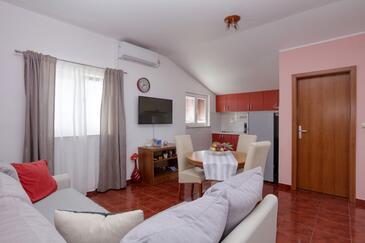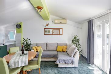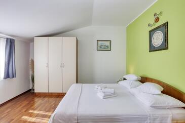 Ferienwohnung bietet Platz für 4 Gäste. Die Betten sind in Schlafzimmern, die es 2 gibt, innerhalb einer Gesamtfläche von 50m2, angeordnet. Die Gäste haben eine eigene Terrasse zur Verfügung, auf der sie in warmen Sommernächten genießen können. Das Apartment bietet Meerblick. Es ist erlaubt, Speisen auf dem Gemeinschafts-Grill vorzubereiten. In der Unterkunftseinheit besteht die Möglichkeit des Mitbringens von Haustieren gegen Aufpreis.